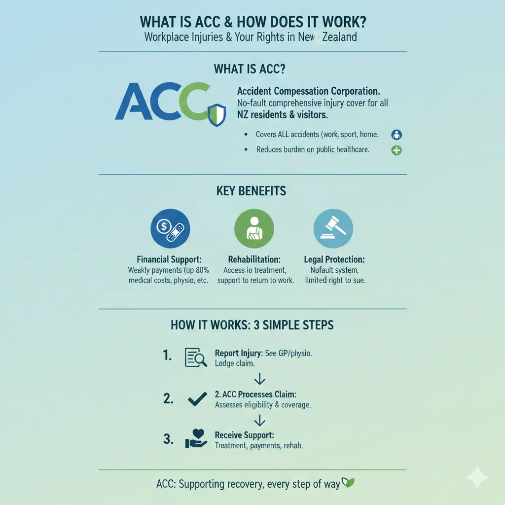 If you've had an accident at work, you're likely worried about medical bills, lost income, and how you'll manage during recovery. The good news is that New Zealand's Accident Compensation Corporation (ACC) provides comprehensive no-fault insurance coverage to help you get back on your feet. Whether it's a slip on a wet floor, a machinery accident, or a repetitive strain injury, understanding your rights and entitlements under ACC can make a real difference to your recovery and financial security.