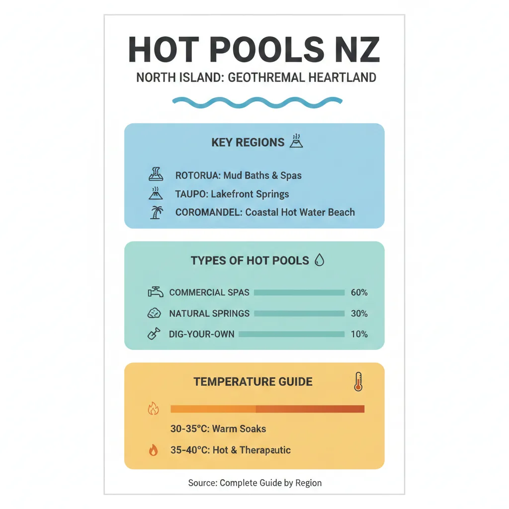 Imagine sinking into steaming geothermal waters after a long tramp, surrounded by misty forests or snow-capped peaks—that's the Kiwi dream we all chase. Hot pools NZ offer some of our country's most therapeutic escapes, naturally heated by volcanic activity beneath our feet. Whether you're after a family soak or a romantic private tub, this complete guide by region covers the best spots, entry details, and tips for 2026.
