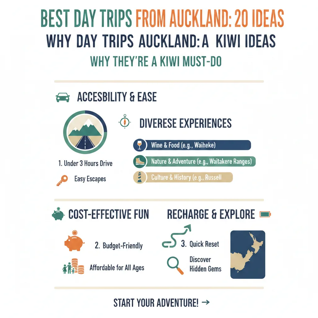 With our compact North Island geography, Auckland serves as the ultimate launchpad for epic escapes. In 2026, expect smooth roads via State Highway 1 and 16, reliable ferries from Downtown, and tour options starting around NZD $100 per person for full-day adventures.[1][2] No need for long drives like to the South Island—these spots deliver world-class scenery, from geothermal wonders to rugged coasts, all doable in under 3 hours one way. Pack your togs, sunscreen, and a picnic; many beaches and tracks have DOC fees or parking at NZD $15-20.[2] Check MetService for weather and NZTA for road updates before heading out.