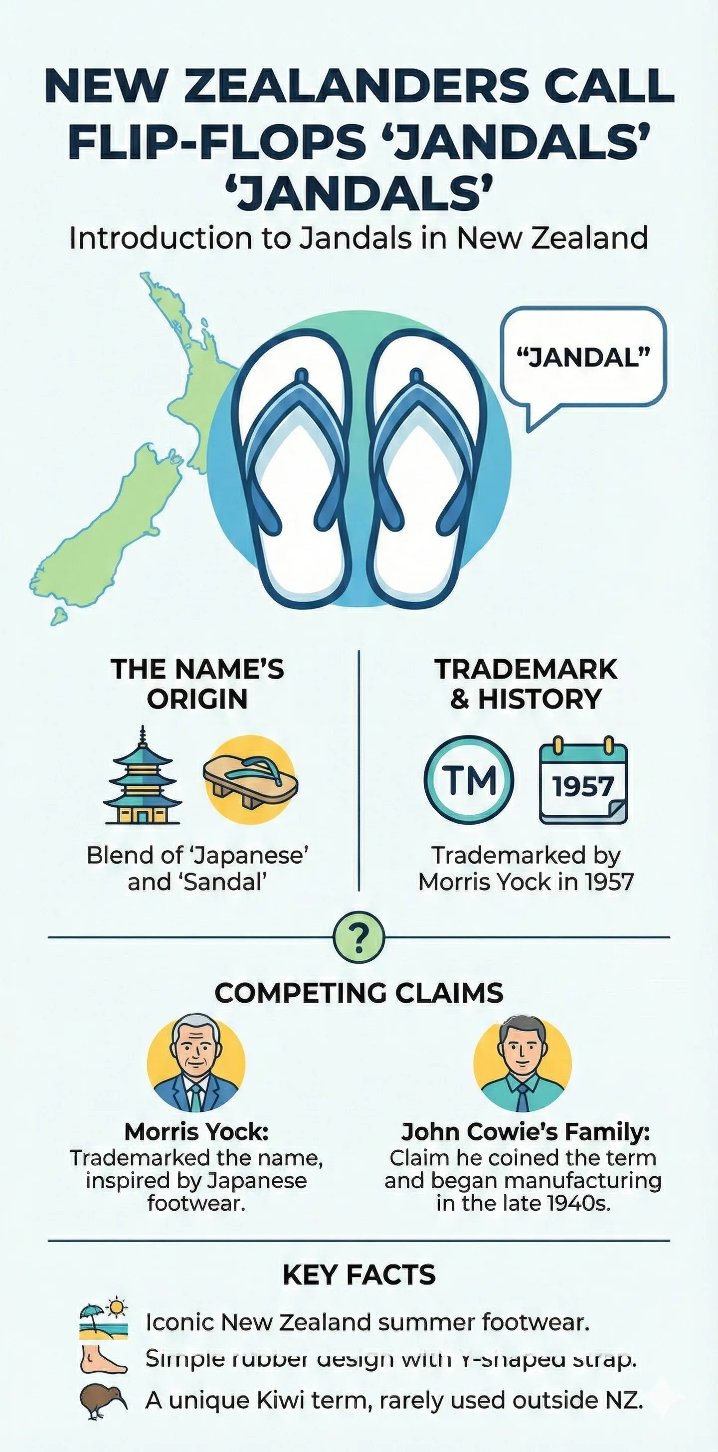 - The term 'jandal' originated in the 1950s and has since become a generic term for this type of footwear