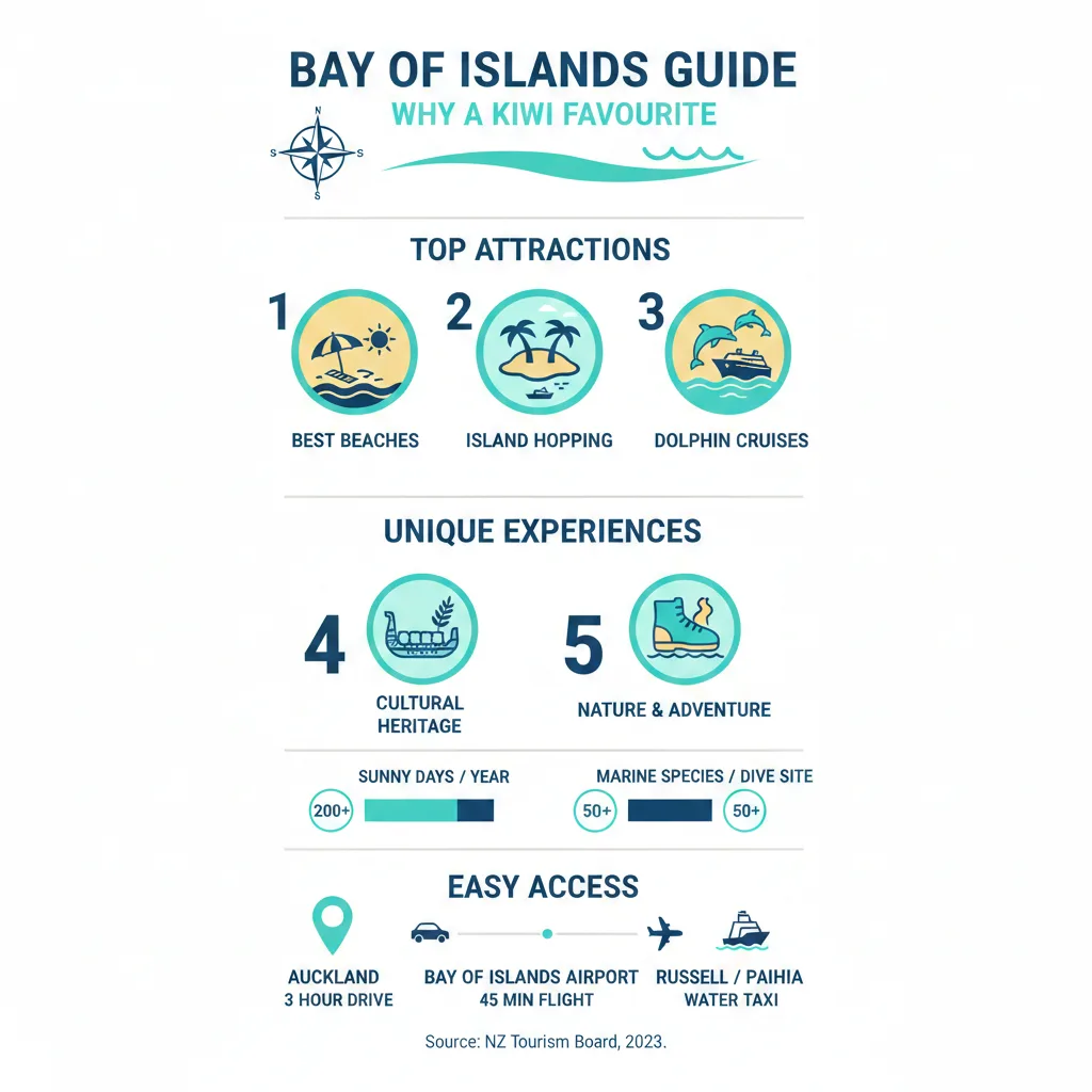 Whether you're chasing relaxation on secluded sands, exploring Māori history at Waitangi, or spotting marine life on a cruise, this region on the North Island's east coast delivers. Just 230km north of Auckland and 60km north of Whangārei, it's an easy road trip via State Highway 1. We've packed this guide with practical tips, from where to park your campervan to booking dolphin encounters that align with DOC guidelines for responsible wildlife viewing.