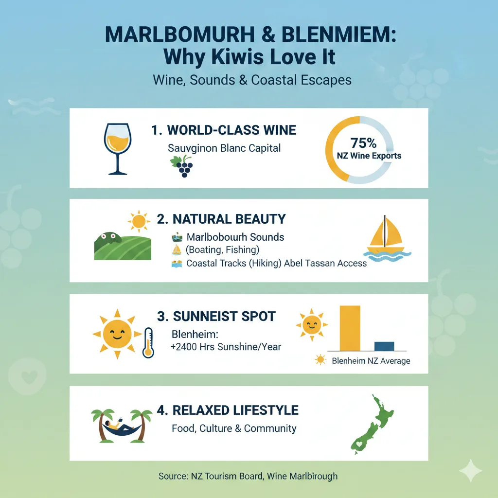 This Top of the South gem is New Zealand's sunniest region, perfect for a weekend getaway or longer escape. Whether you're a wine enthusiast, outdoor adventurer, or foodie seeking fresh local flavours, here's your guide to making the most of Marlborough and Blenheim in 2026.