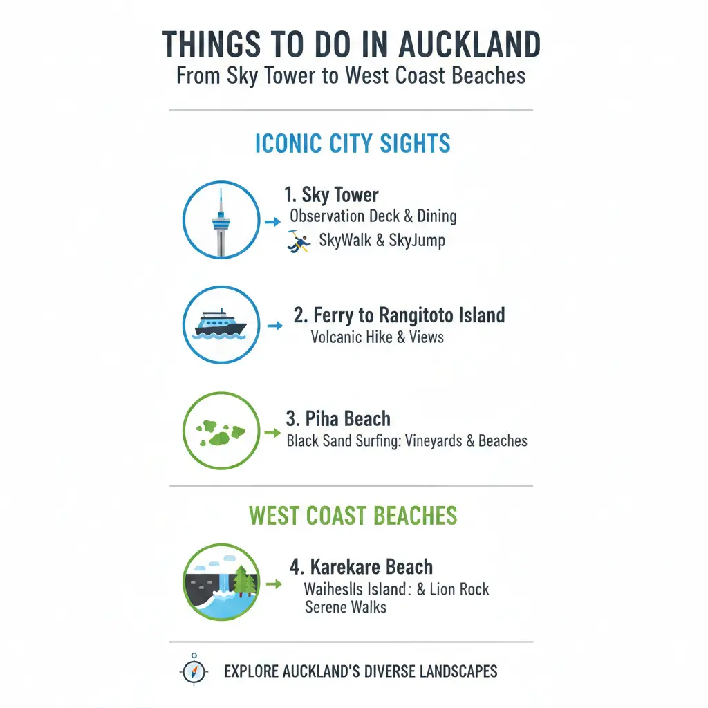 Auckland's got it all – from the dizzying heights of **Sky Tower** to the wild, black-sand waves of the **West Coast beaches**. Whether you're a local Kiwi rediscovering your backyard or planning a weekend getaway, this guide packs in the best things to do, with practical tips to make your trip seamless in 2026.
