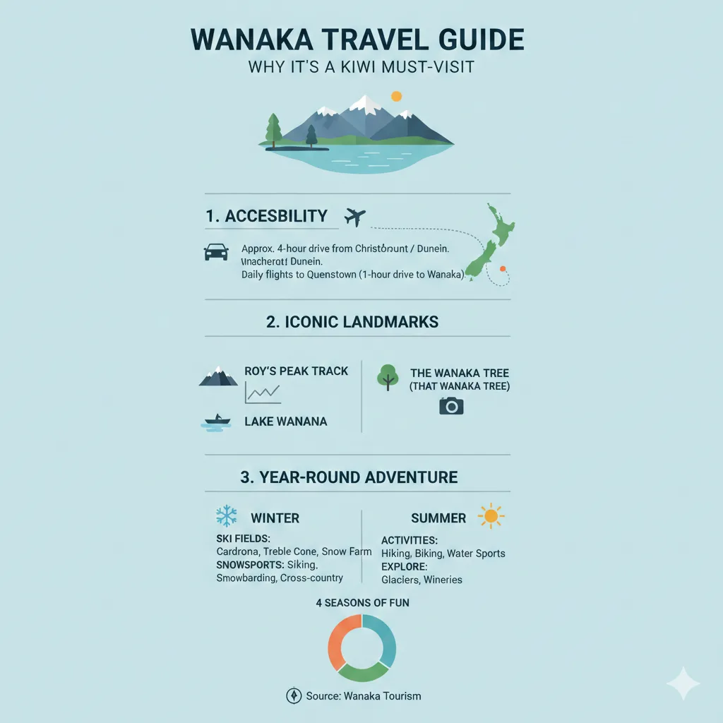 Imagine standing at the summit of Roy’s Peak, gazing out over the glassy expanse of Lake Wanaka with the Southern Alps framing the horizon—that’s the magic of Wanaka waiting for you. This lakeside gem in Otago offers Kiwis the perfect escape for adventure, relaxation, and unforgettable South Island scenery, whether you’re chasing winter powder or summer hikes.[1][2]