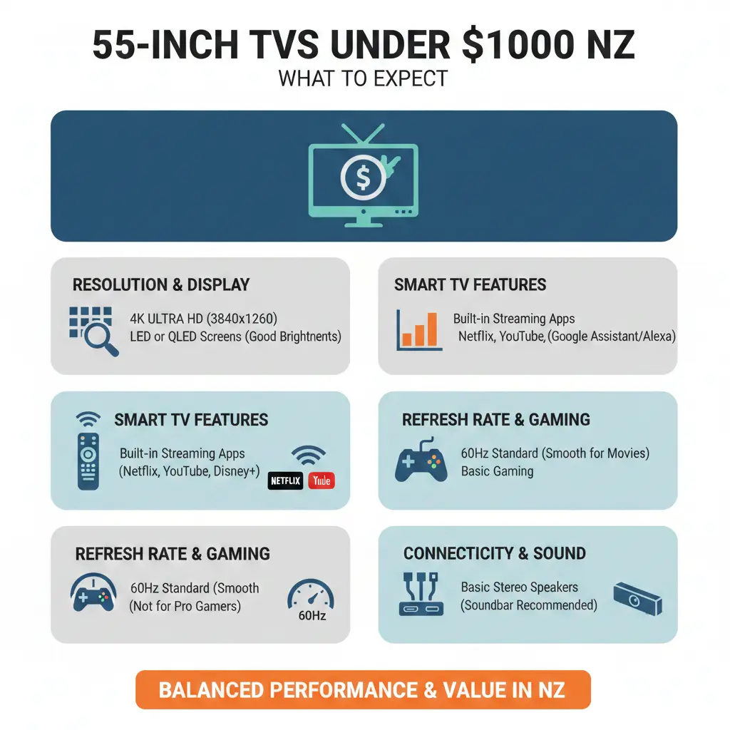 Finding a quality 55-inch TV under $1,000 doesn't mean settling for poor picture quality or limited features. In 2026, there are several excellent options available to Kiwis that deliver impressive performance without breaking the bank. Whether you're upgrading your lounge, furnishing a guest room, or looking for a gaming-ready display, we've compiled everything you need to know about the best budget 55-inch TVs currently available in New Zealand.
