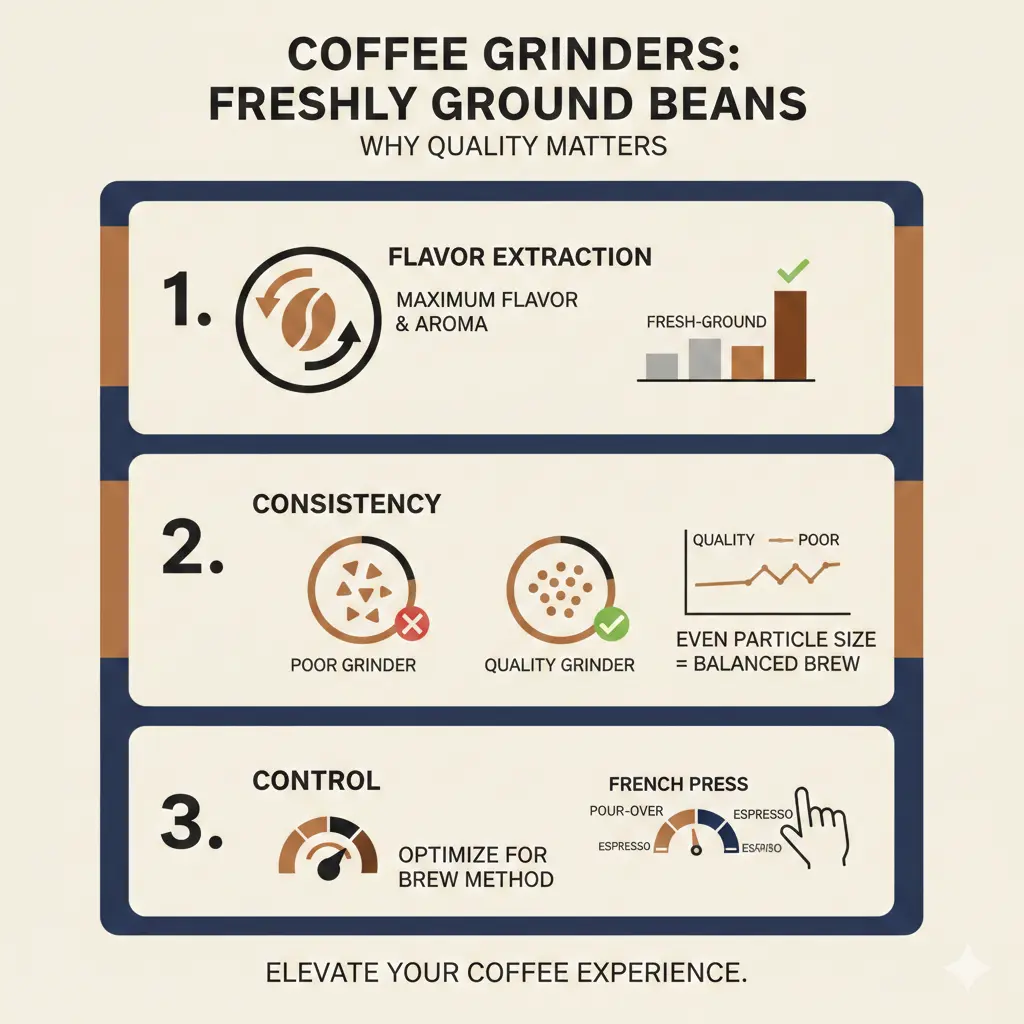 The difference between a quality grinder and a cheap one isn't just about taste—it's about getting the most from your beans. Consistent grinding means better extraction, fewer bitter or sour notes, and ultimately, a cup that's worth the effort.
