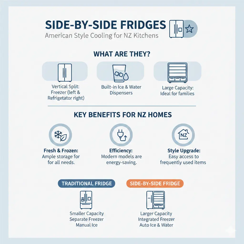 Imagine opening your fridge door to find everything at your fingertips—fresh produce on one side, frozen meals on the other—without bending down or rummaging through drawers. Side-by-side fridges, with their iconic American-style design, are transforming Kiwi kitchens by offering spacious, organised cooling that's perfect for busy households down under.