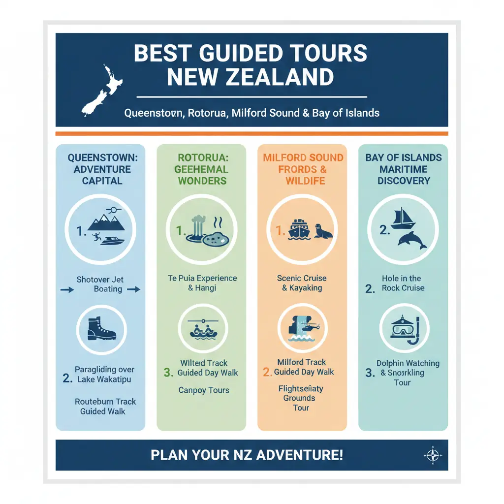 Best Guided Tours in Queenstown, Rotorua, Milford Sound and Bay of Islands (Roundup Format)