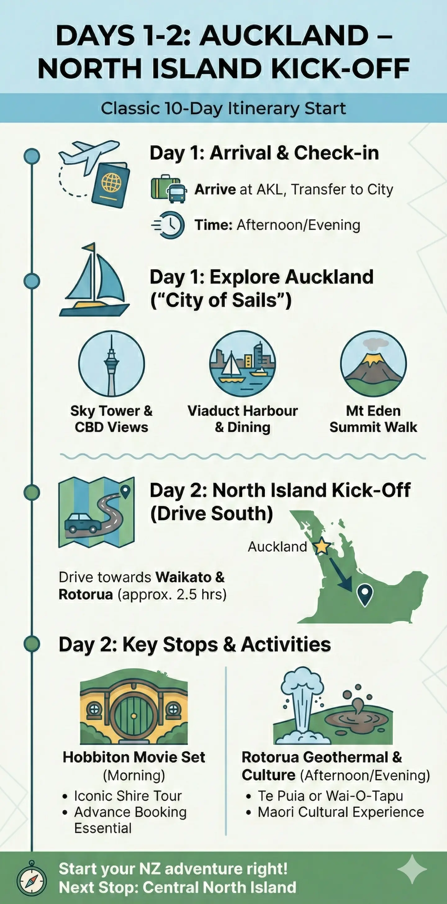 Whether you're a Kiwi planning a staycation or sharing New Zealand's magic with first-time visitors, this Classic 10-Day New Zealand Itinerary for First-Time Visitors (North & South Highlights) packs in the essentials. You'll zip between islands via domestic flight, hitting urban vibes, geothermal wonders, adrenaline rushes, and epic fjords—all in a tight 10 days.[3]