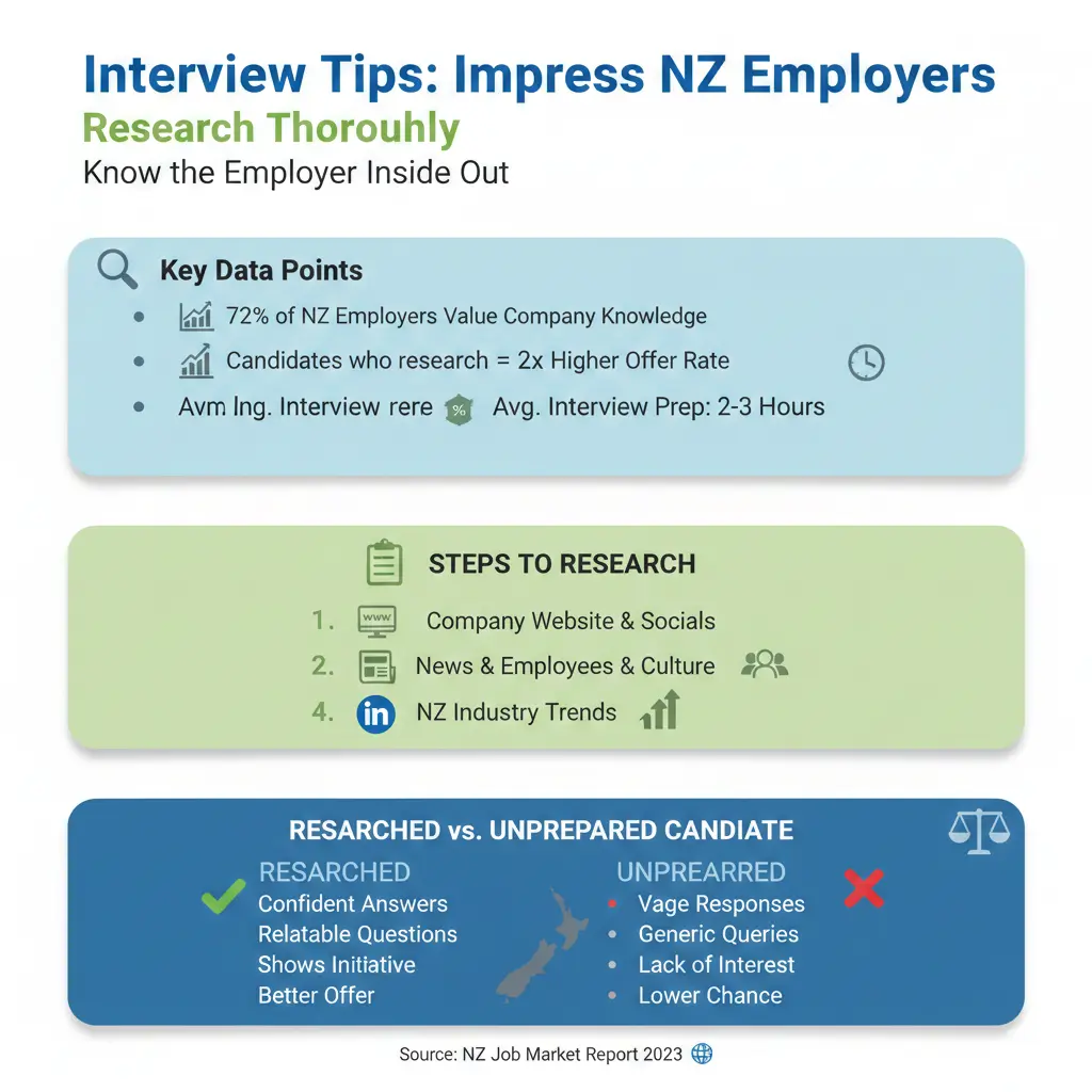 Before stepping into any interview, dive deep into the organisation. Kiwi bosses appreciate candidates who show they've done their homework—it demonstrates enthusiasm and initiative.