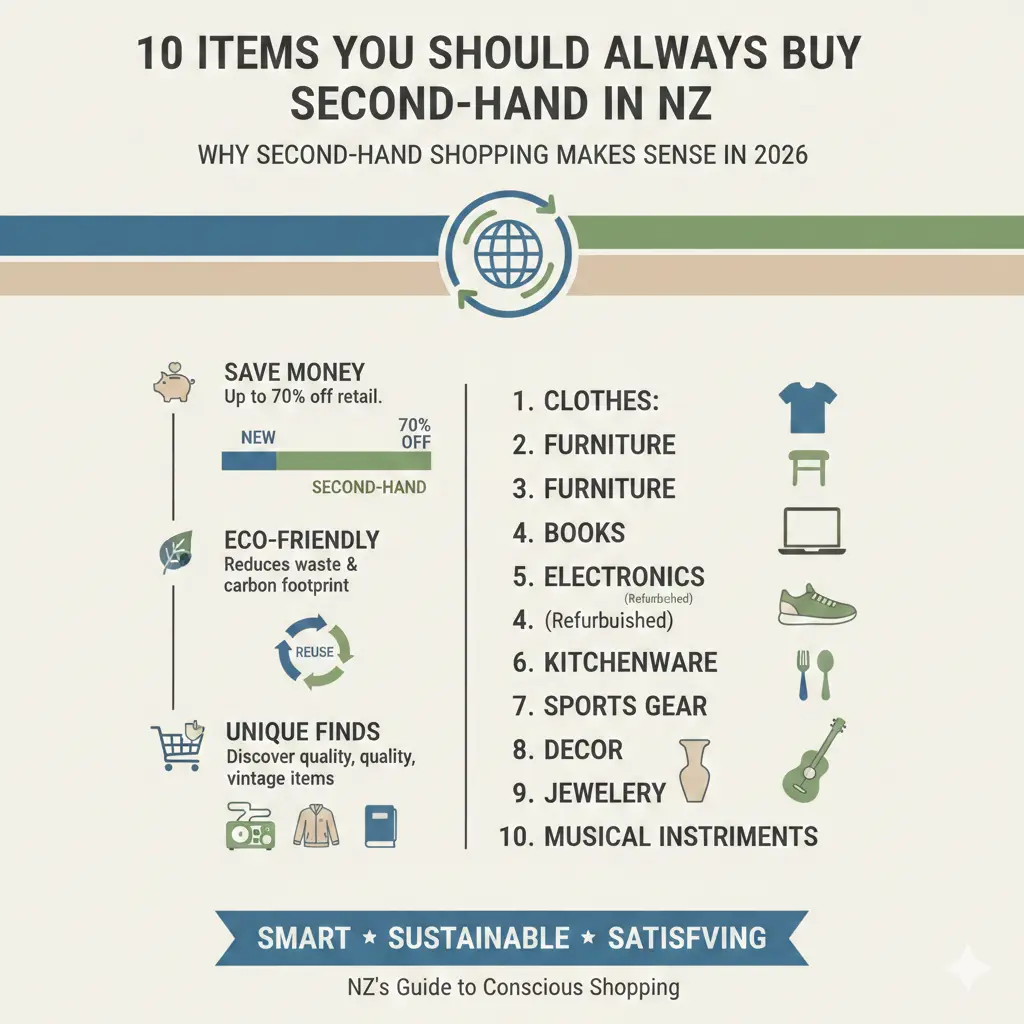 The second-hand market in New Zealand has never been more accessible or diverse. Whether you're motivated by financial pressure, environmental concerns, or simply finding better quality items, there's a second-hand option for almost everything you need. Start by identifying which categories matter most to you—furniture, fashion, tech, or home goods—then explore the platforms and stores that specialise in those areas. You'll be surprised at the quality, variety, and savings waiting in New Zealand's thriving circular economy.