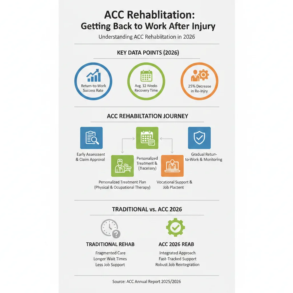 ACC's no-fault scheme covers most injuries, funding treatment, compensation, and rehab to get you back on your feet. But with rising costs and a projected $26 billion deficit by 2030, ACC is refocusing on efficient rehab to ensure sustainability for all New Zealanders[3][5]. This guide breaks down the 2026 landscape of ACC rehabilitation: getting back to work after injury, with practical steps tailored for Kiwi workers.