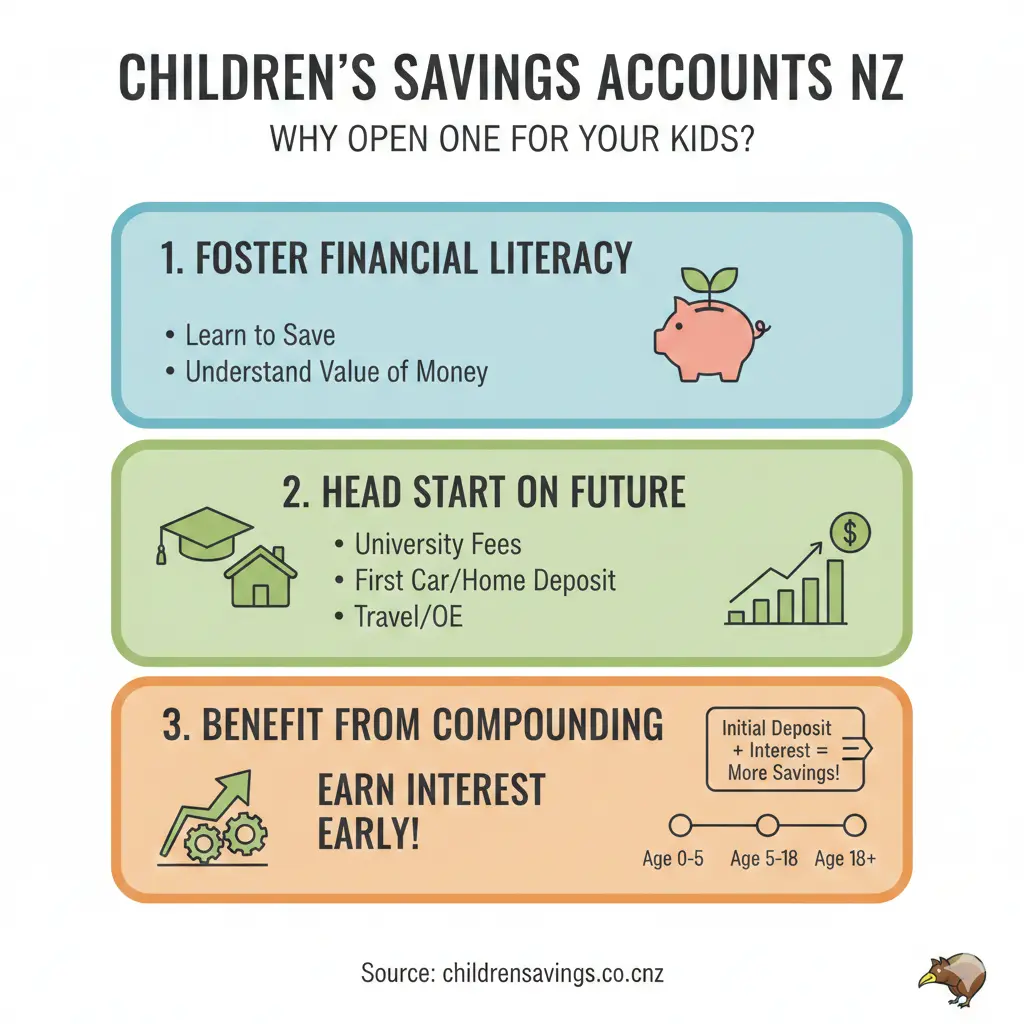 Starting a savings account for your kids isn't just about stashing birthday cash—it's an investment in their financial future. Research shows children who learn money management young are more likely to save as adults, avoiding debt traps that snag many Kiwis later.[2]