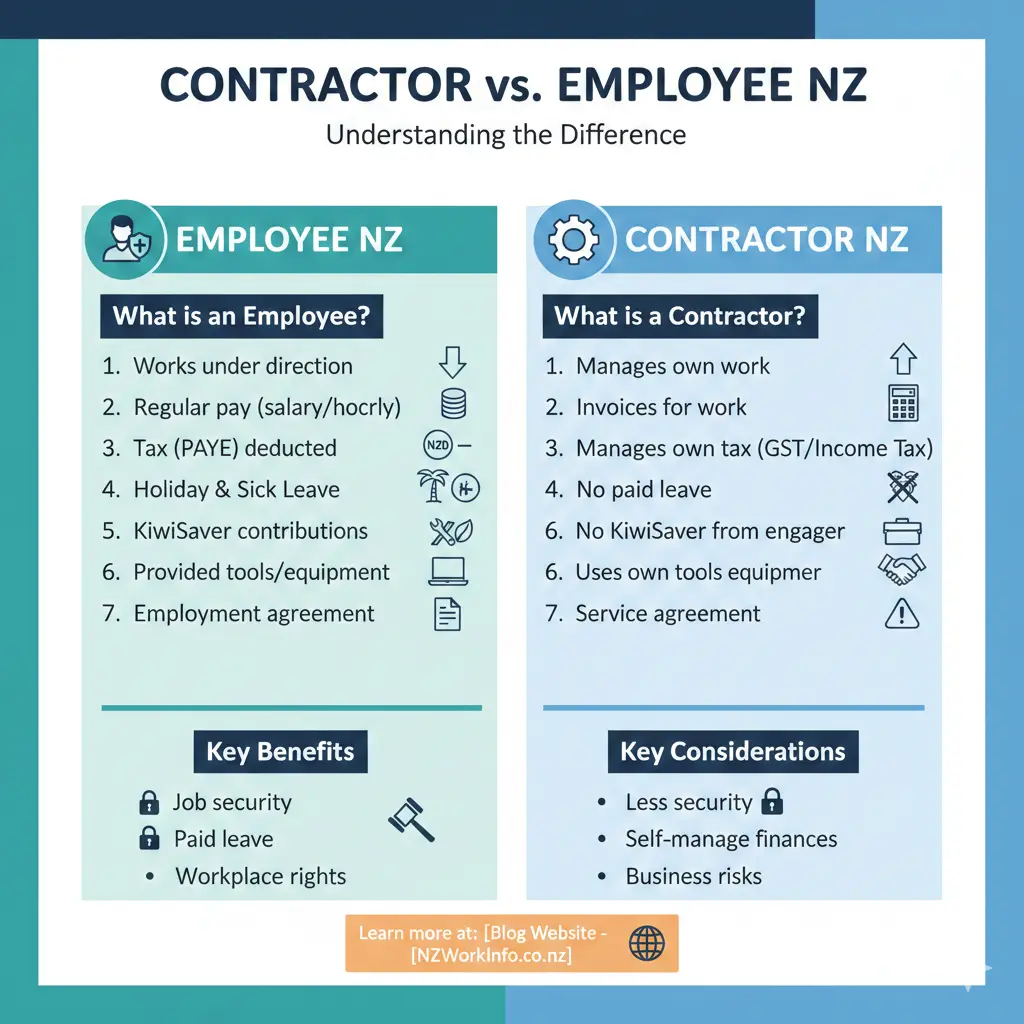 Imagine hiring a tradie to fix your roof, only to find out later they're claiming holiday pay and minimum wage entitlements because they've been misclassified as a contractor instead of an employee. For Kiwi businesses and workers alike, getting the contractor vs employee NZ distinction right isn't just paperwork—it's about avoiding hefty penalties, backdated payments, and Employment Relations Authority headaches. With ongoing debates around a new 'gateway test' in 2026, understanding these differences has never been more critical for compliance and cash flow.