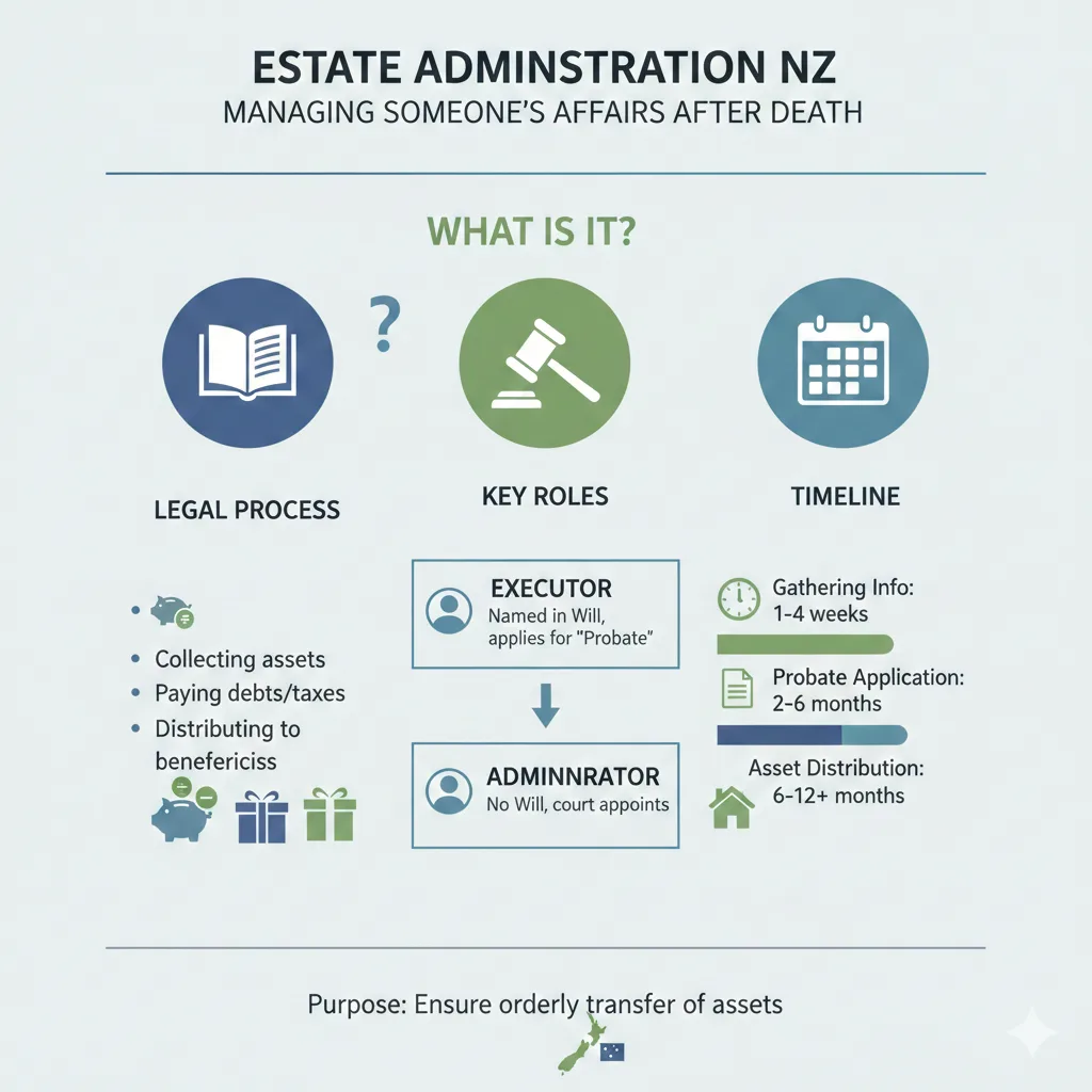 This guide breaks down everything you need to know about estate administration NZ, tailored for executors, administrators, and families. Whether you're dealing with a modest KiwiSaver balance or a family home, we'll cover the practical steps, timelines, and resources to get it right.