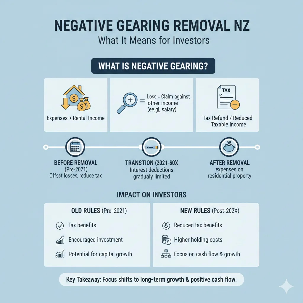 The removal of negative gearing represents a significant shift in New Zealand's approach to property investment taxation. The policy was designed to improve housing affordability for first-home buyers by removing a tax advantage that investors previously enjoyed.
