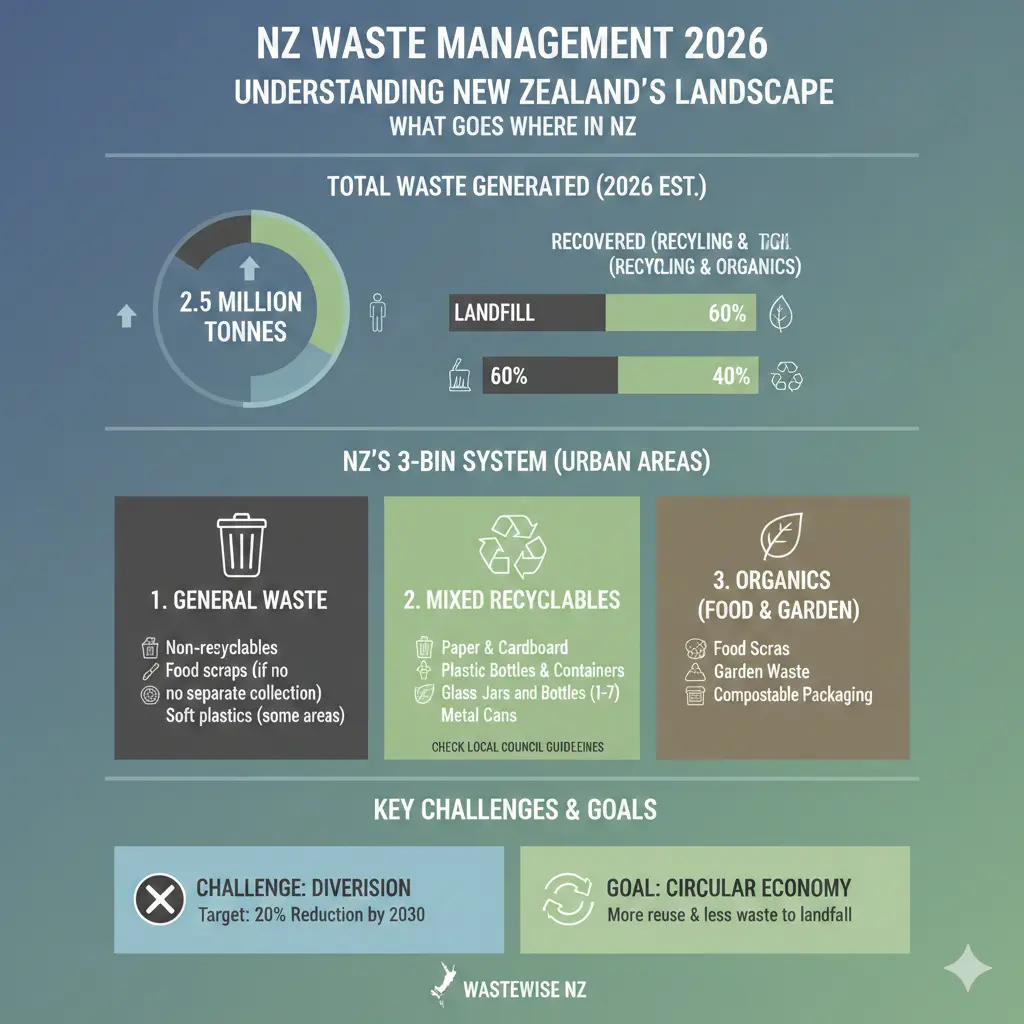 Ever stared at your rubbish bag, wondering if that yoghurt pottle or pizza box truly belongs in the recycling? You're not alone—Kiwis generate over 17 million tonnes of waste annually, much of it landing in landfills when it could be diverted.[1] With New Zealand's waste policies evolving rapidly into 2026, knowing what goes where saves money, cuts emissions, and keeps our whenua pristine. This guide breaks it down with the latest rules, practical tips, and council resources to make sorting simple and effective for your home or business.