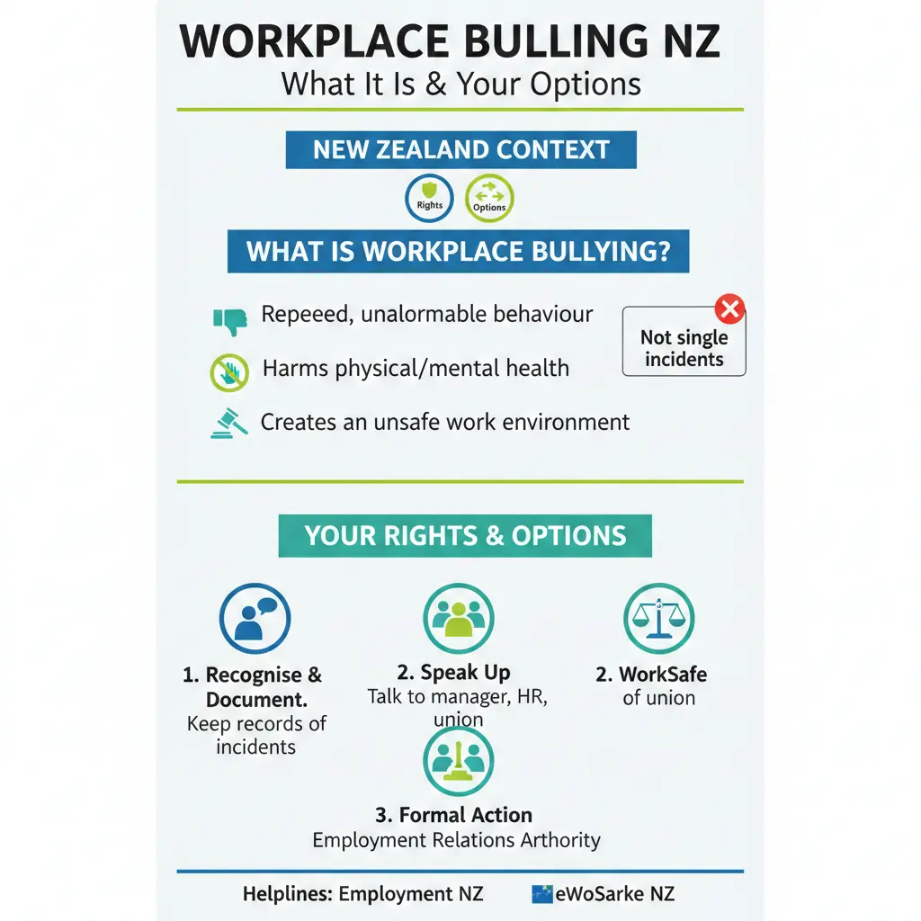 In this guide, we'll break down what constitutes workplace bullying in New Zealand, outline your legal protections, and provide practical options for resolution—all tailored for Kiwis navigating our unique employment landscape in 2026. Whether you're an employee enduring targeted ridicule or an employer aiming to foster a respectful culture, this resource equips you with actionable advice grounded in current legislation and best practices.