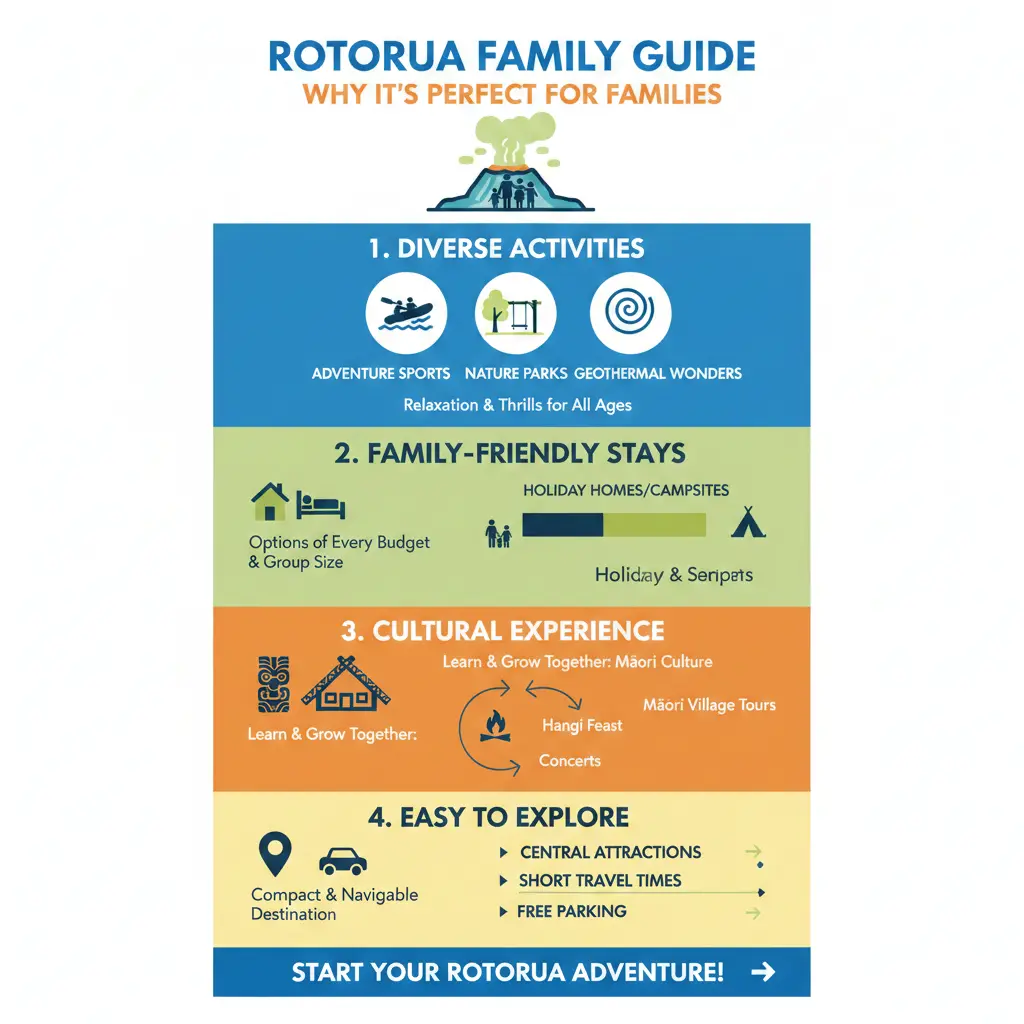 - Getting There: Fly direct via Air New Zealand or drive SH1/SH5. Rotorua Airport shuttles are family-friendly.