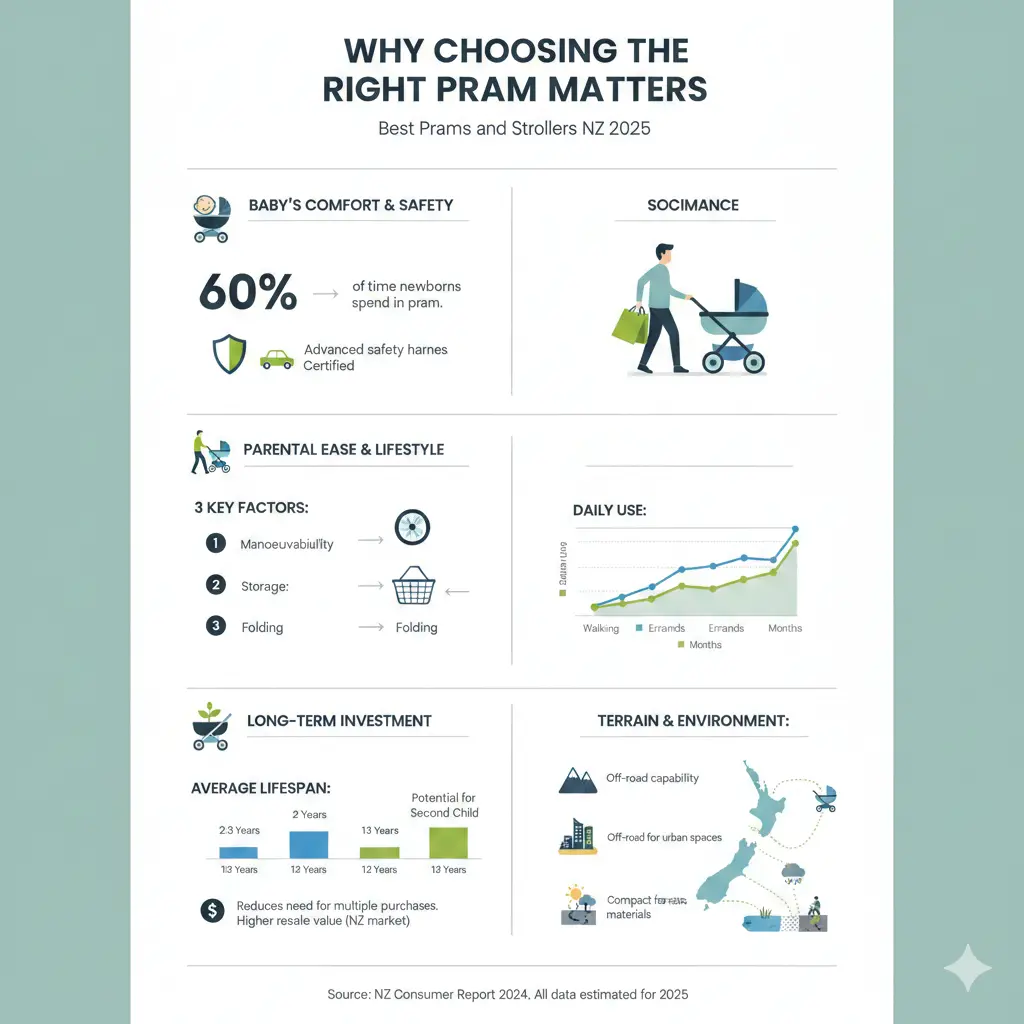 Your pram isn't just about getting your little one from A to B—it's a significant investment in your family's daily life. A good pram should be comfortable for your baby, easy to use for you, and durable enough to handle New Zealand's varied terrain, from city streets to beach walks and hiking trails. The right choice can make parenting easier, safer, and more enjoyable for everyone involved.