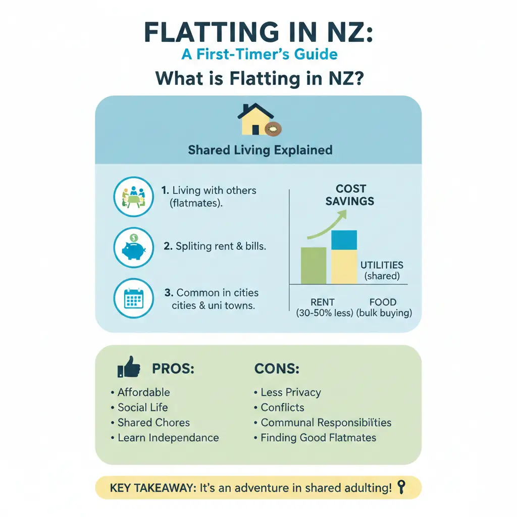 Flatting means sharing a rental property where each person has their own bedroom but splits common areas like the kitchen and lounge. It's hugely popular among young Kiwis, students, and professionals because it slashes costs compared to solo renting.[1] Think classic Kiwi share houses in suburbs like Mt Eden in Auckland or Newtown in Wellington, buzzing with flatmates juggling work, uni, and weekend barbies.