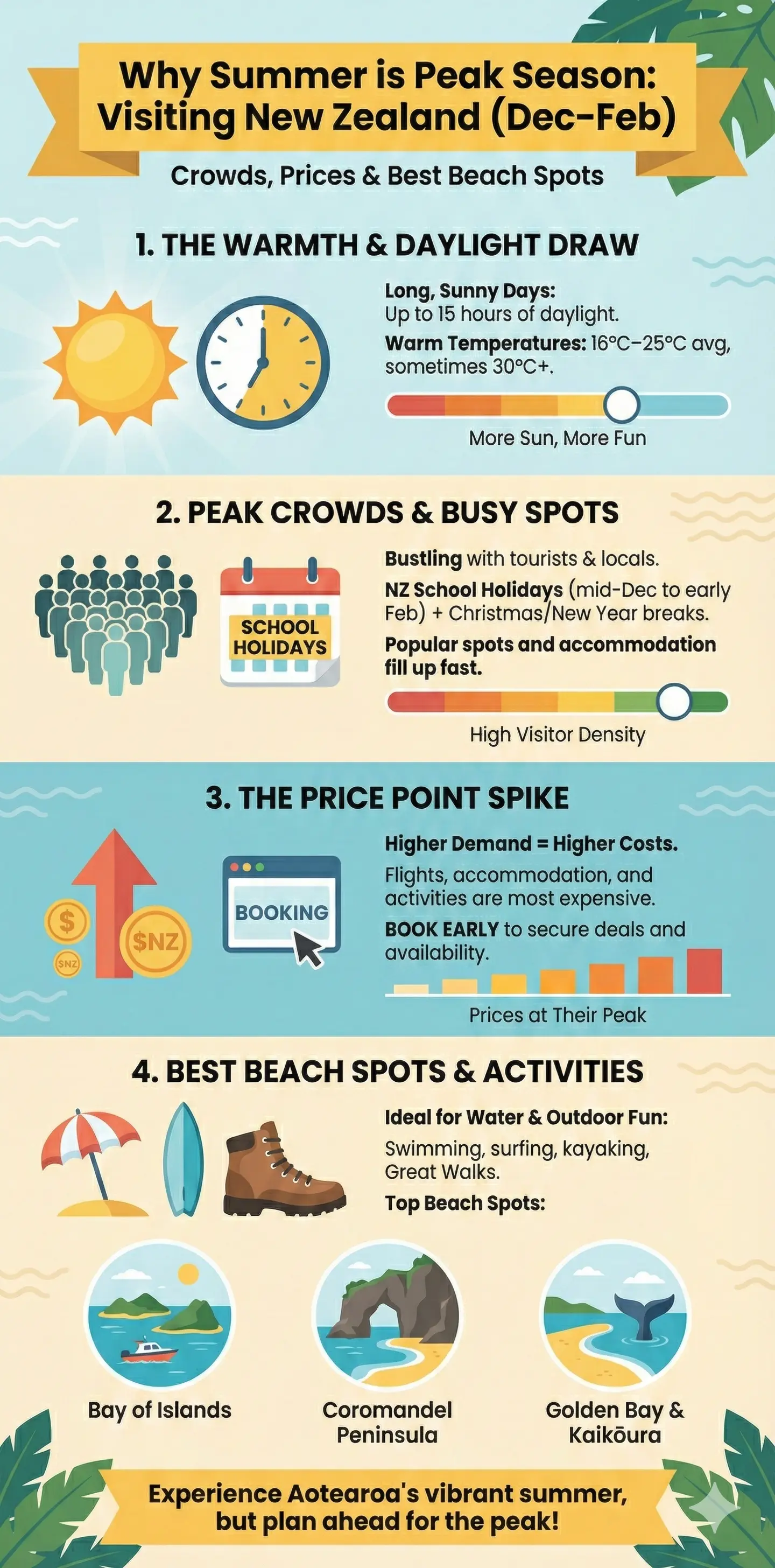 Visiting New Zealand in Summer (Dec–Feb): Crowds, Prices and Best Beach Spots