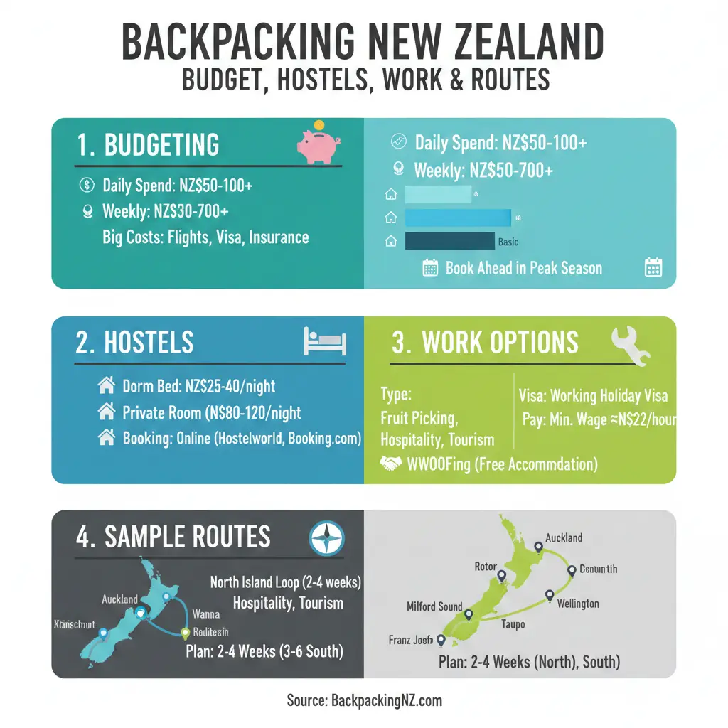 Backpacking New Zealand: Budget, Hostels, Work Options and Sample Routes