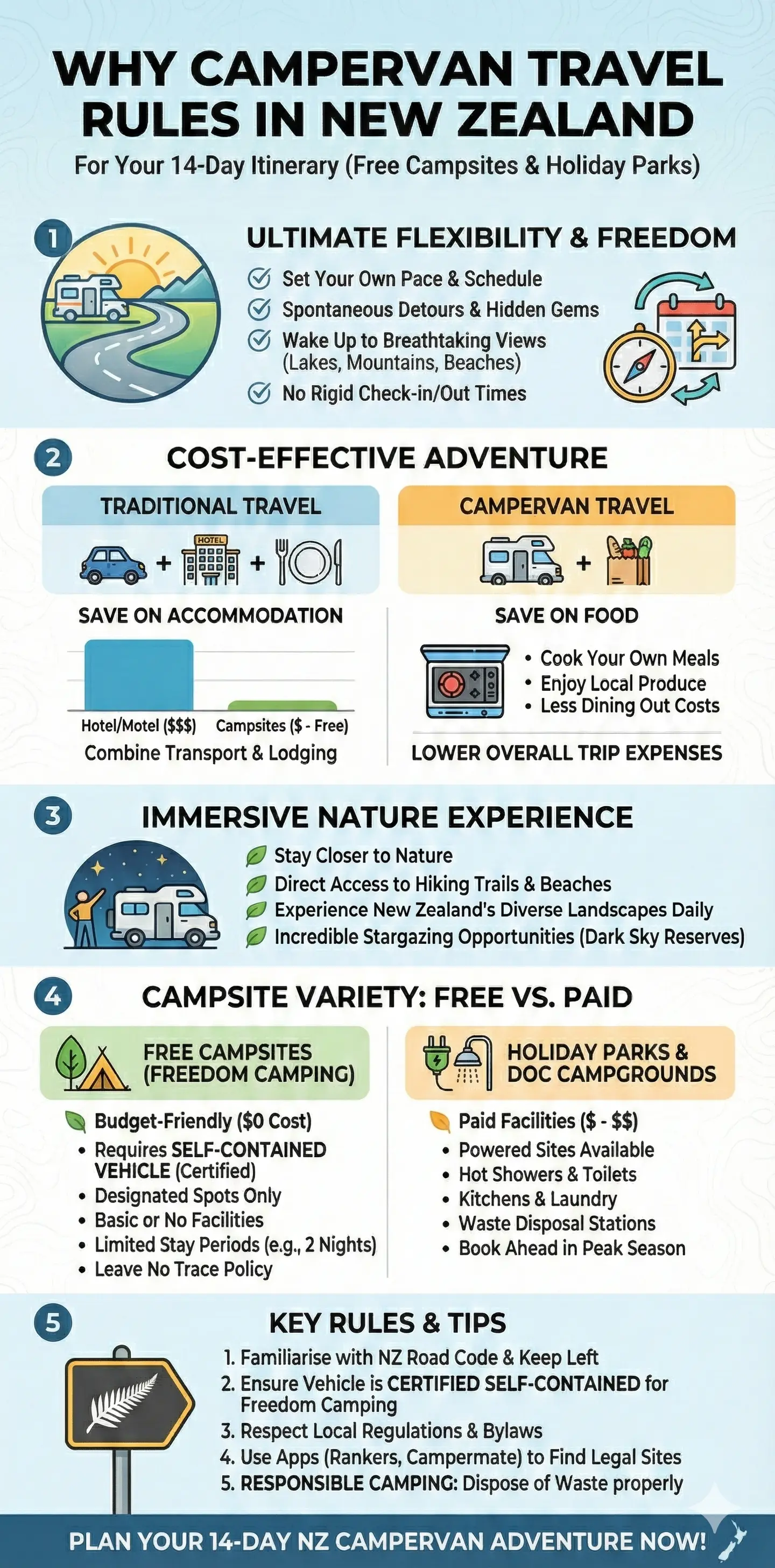 New Zealand Campervan Itinerary for 14 Days (Free Campsites & Holiday Parks)