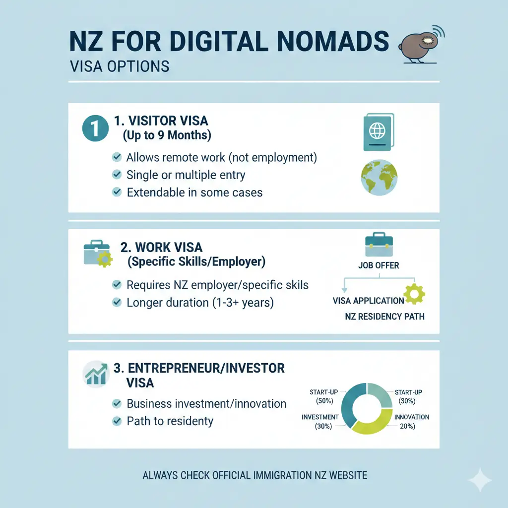 Apply online via immigration.govt.nz—it's straightforward for visa-waiver countries like the US and Canada. Kiwis, note that if you're hosting nomad whānau, remind them of the 183-day tax threshold: stays under this avoid NZ income tax on foreign earnings.