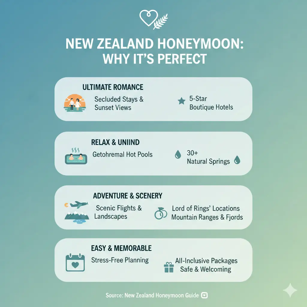 Whether you're dreaming of North Island thermal wonders or South Island fjord magic, this New Zealand Honeymoon Itinerary: Romantic Stays, Hot Pools and Scenic Flights blends adventure, luxury, and intimacy. Tailored for couples, it's packed with practical tips, 2026 pricing insights, and Kiwi-friendly advice on bookings via official sites like DOC for parks and Air New Zealand for domestic flights.