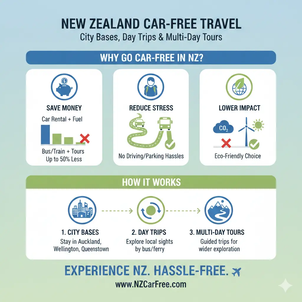 Imagine exploring New Zealand's stunning landscapes and vibrant cities without the hassle of driving, parking fees, or fuel costs. Whether you're a Kiwi on a budget holiday or simply prefer leaving the car at home, basing yourself in key cities and using public transport for day trips and multi-day tours makes it entirely possible—and often more relaxing—in 2026.